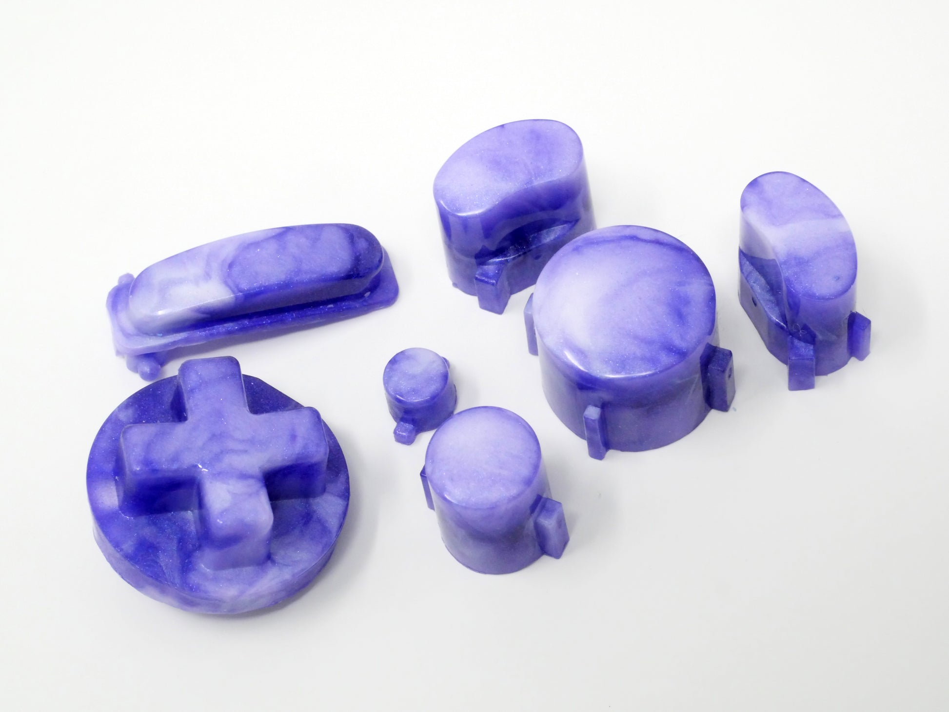 Handmade resin button set for a gamecube controller. Flat topped (no letters) D-pad, start, ABXY and Z buttons.