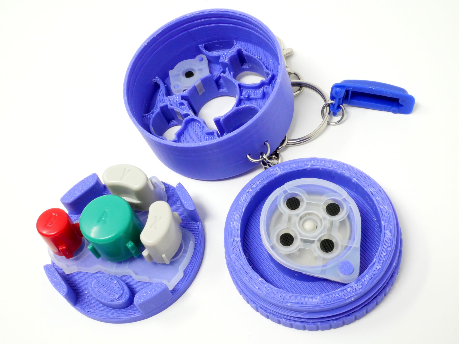 This is a 3D printed fidget toy that we designed and print ourselves. Easily swap out the buttons inside to customize it your way. Compatible with 1st party, 3rd party or resin cast button sets. There are three parts, a front shell, mid plate and back shell. Included are rubber button pads. These pads make the buttons feel snappy and fun to press. The FidgetCube also comes with a keychain so you can take it with you on the go. Each FidgetCube has been tested using 1st party buttons, let use know if you have questions. Please watch the video under the product photos to see how to change out or install buttons on your FidgetCube.