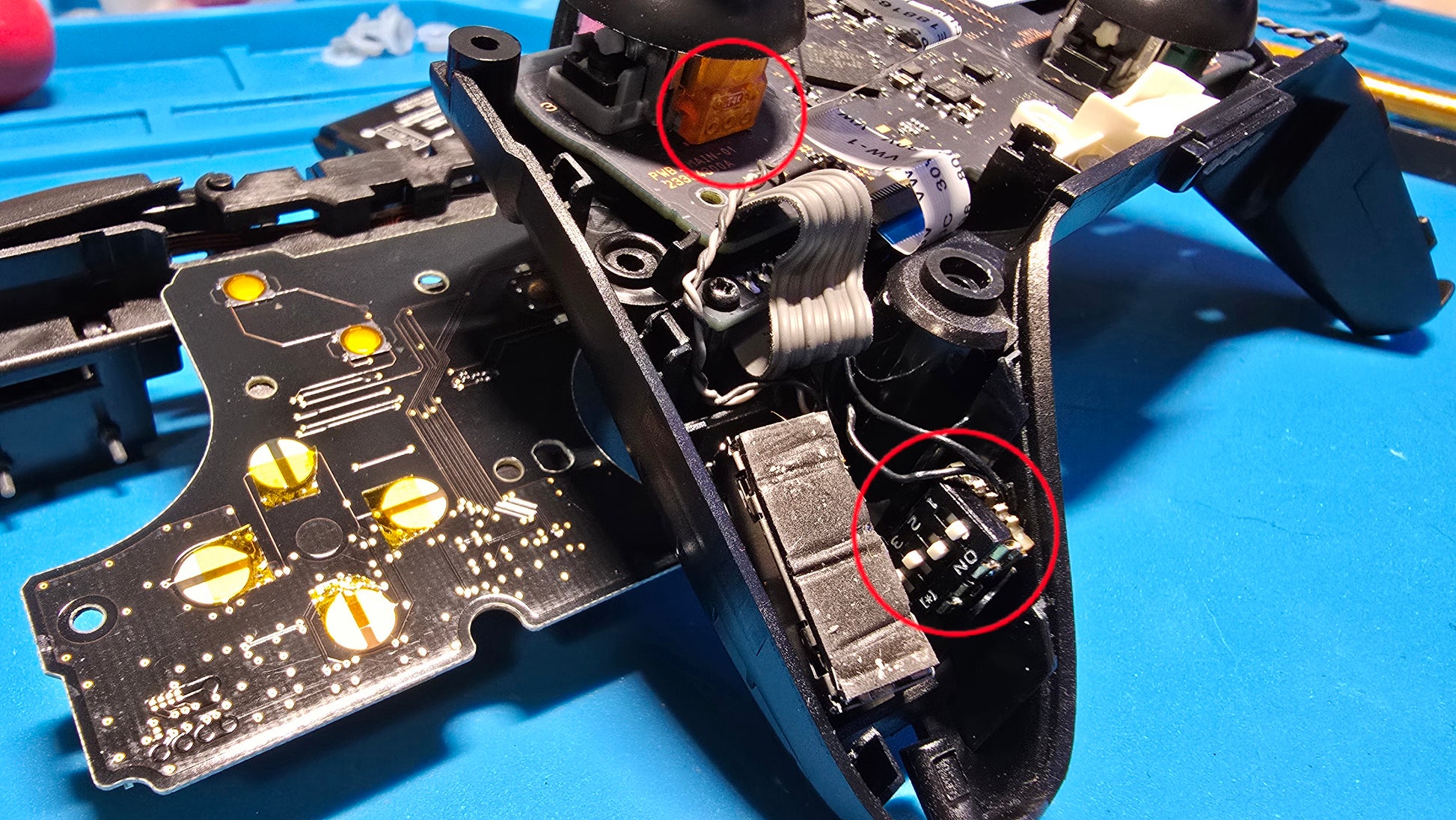 This wireless controller has an original pro controller board in brand new condition, (tight stick boxes.) All other parts are aftermarket for a discounted price. Additional hardware mods include: